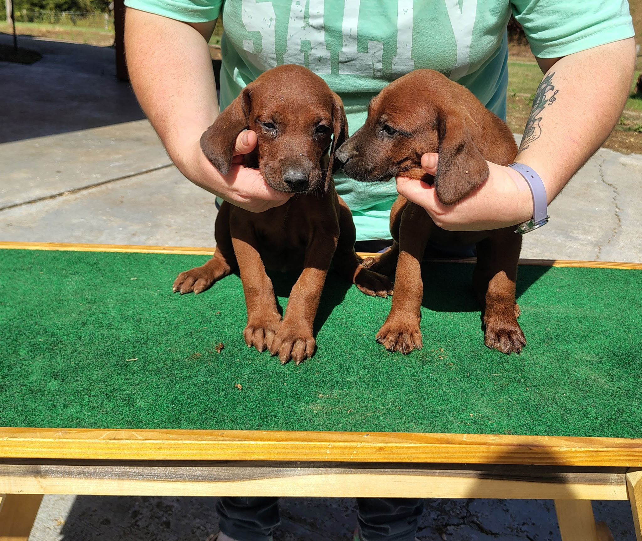 Redbone pups today. The result of this mixture makes them a reliable dog,